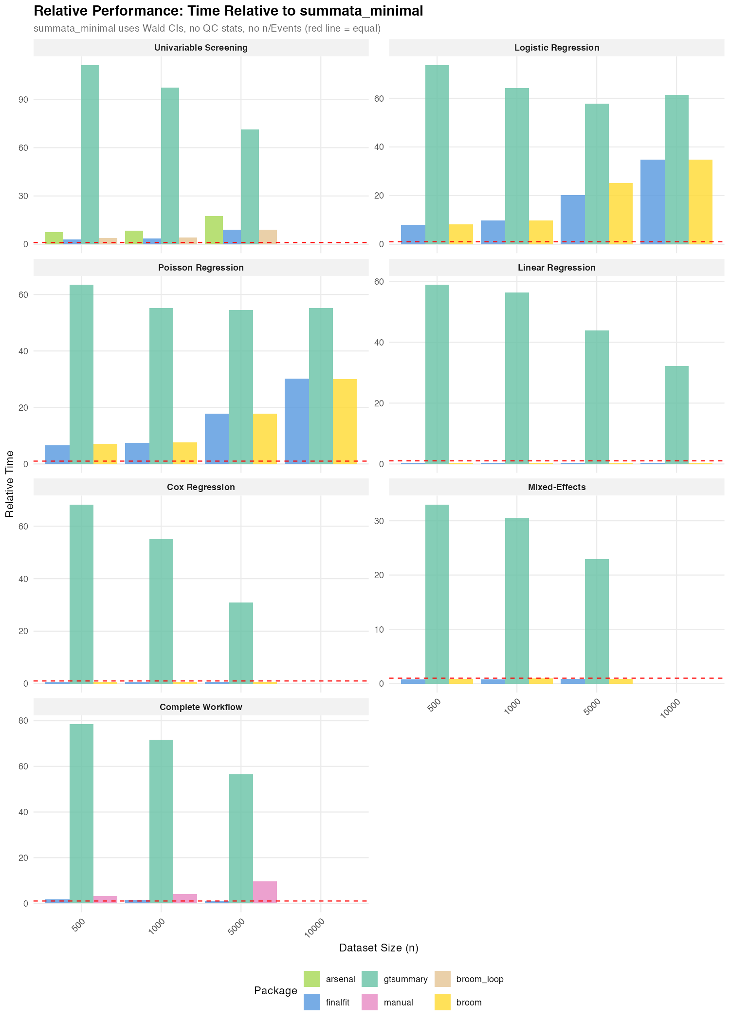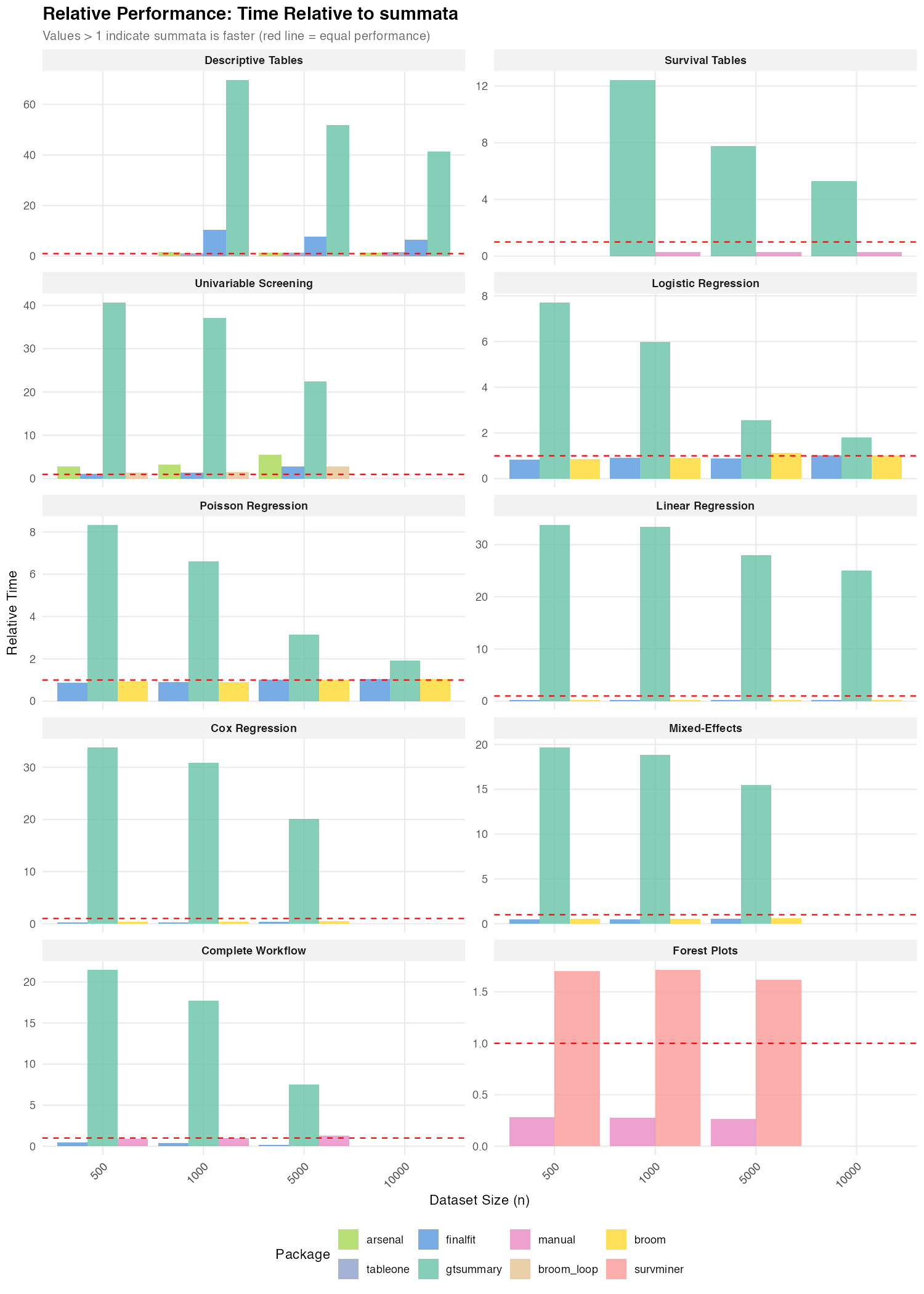 Execution speed is rarely the primary consideration when selecting statistical software—correctness, interpretability, and ease-of-use usually take precedence. However, computational efficiency becomes relevant when working with large datasets, conducting simulation studies, or iterating through model specifications during exploratory analysis.