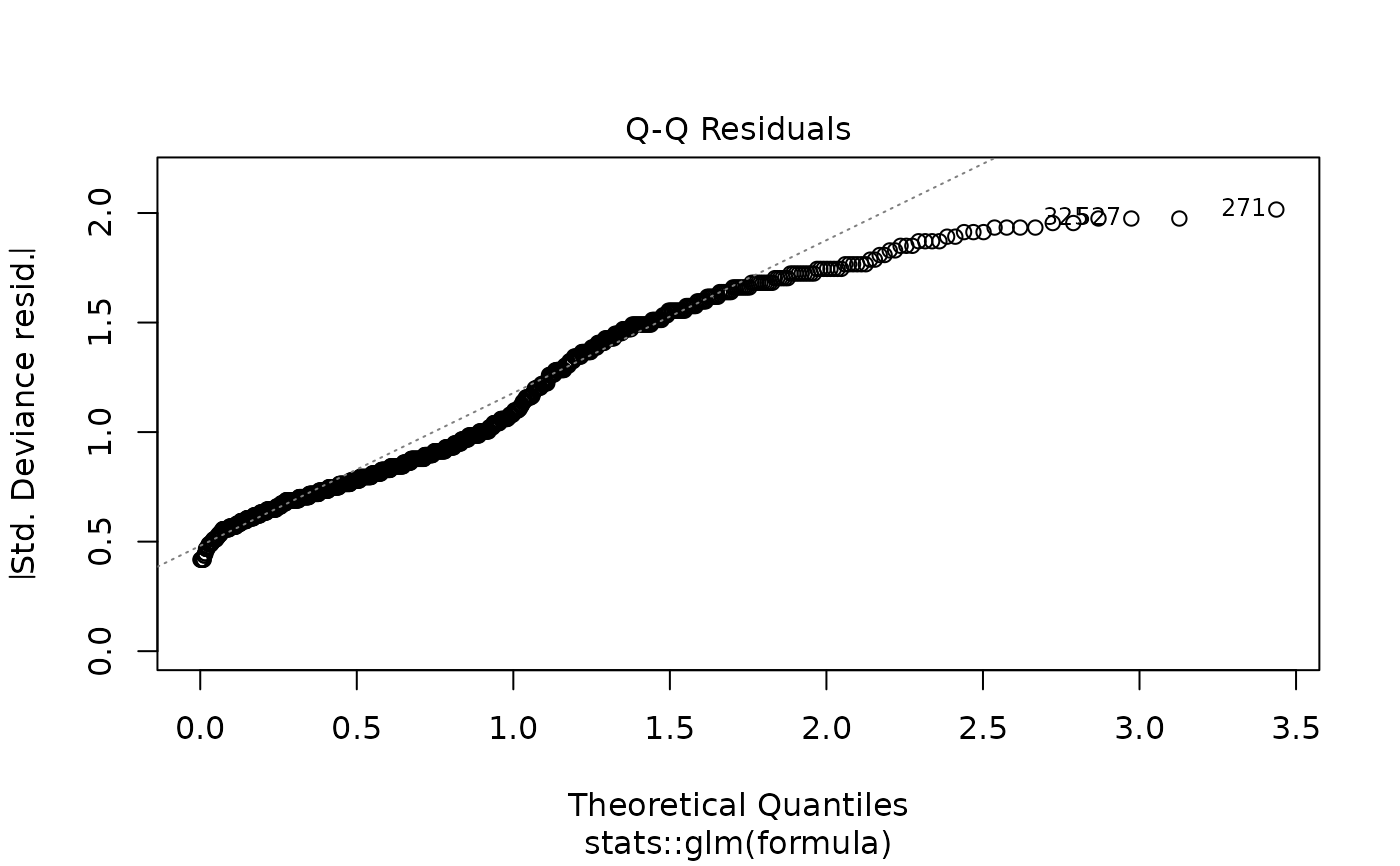 "binomial"orbinomial()- Logistic regression for binary outcomes (0/1, TRUE/FALSE). Returns odds ratios (OR). Default."quasibinomial"orquasibinomial()- Logistic regression with overdispersion. Use when residual deviance >> residual df.binomial(link = "probit")- Probit regression (normal CDF link).binomial(link = "cloglog")- Complementary log-log link for asymmetric binary outcomes.
